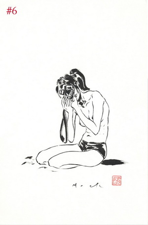 Pour son crowdfunding, David Mack a besoin de 20,000$ (15,000 euros ) . Le but est de publier un livre de luxe, un « hardcover » avec un beau papier, de 2 années de dessins à l’encre de chine : des nues en mouvement, allongés, des poses discrètes, des femmes tatouées. Un pinceau épais, et des gestes plus calligraphiée, dans une tradition japonaise. Un livre où le noir vient se déposer sur l’érotisme et la folie féminine.