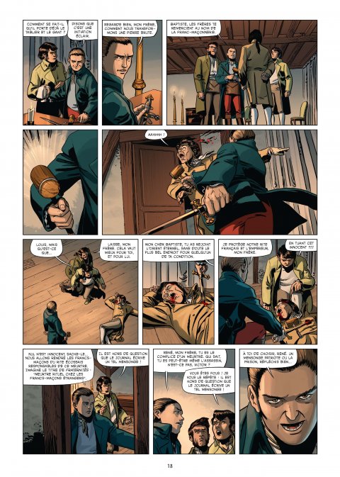 Jean-Christophe Camus au scénario connait bien l’histoire du mouvement maçonnique. Et c’est presque naturellement qu’il met en scène dans ce tome « L’ordre manipulé » par un Fouchet, qui désire que l’organe de presse « Fraternités » entre en lisse aux ordres du régime.