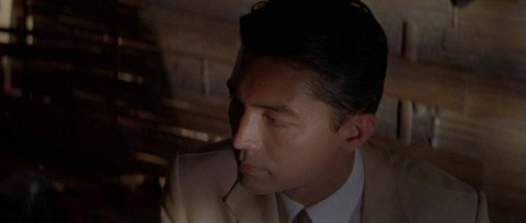 Dans le trio de choc de « L’année du Dragon », je voudrais le sublime John Lone dans le rôle de Joey Tai, alias un membre d’une triade influente qui en veut toujours plus pour gravir les échelons. Sacré beau bonhomme, le zigue ! Et pas que l’enveloppe, polope ! A dix ans, il est entré à l’académie de Chin Chiu qui est liée à l’opéra de Pékin où il apprend tous les arts de la scène.