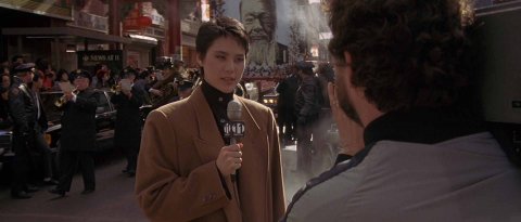 Cimino les a rajeunis et à redonner sa teinte dans le contexte à l’héroïne (Ariane dans le rôle de Tracy Tzu, sino américaine) en jeune reporter. Moins de 20 balais au compteur dans sa vraie vie, lors de ses défilés de mode en tant que mannequin d’un célèbre porte fringue de renommée internationale que je ne nommerai pas. Afin de ne pas lui offrir une pub supplémentaire dont il n’a nul besoin. Non mais sans dec de cacahuète ! Elle fleure la troisième génération dans le film en totale assimilation des valeurs amerloches, à tel point qu’elle est blanchie à la culture amerloche et en vient presque à renier ses origines et mépriser ses compatriotes asiatiques.