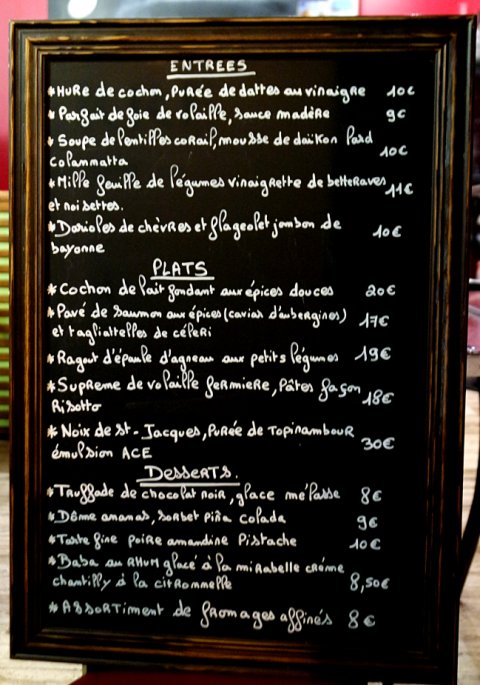 Dans ce quartier mythique, il se passe des choses magiques entre deux époques, une cuisine réjouissante, jubilatoire, composée de produits frais, souvent bio, concoctée par une équipe de trentenaires passionnés, humbles, habités par le désir de partager leurs dernières trouvailles culinaires mais qui savent y faire, un rapport qualité-prix très convaincant, une carte des vins, un service aux petits soins, aimable, toujours de bon ton avec cette distance/proximité aux moments opportuns que l’on a particulièrement appréciée, une formule midi 14,90 et un menu gastronomique, haut de gamme, à la carte.