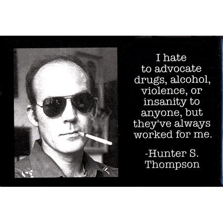 « Je déteste me faire l’avocat des drogues, de l’alcool, de la violence ou de la folie, mais en ce qui me concerne, ça m’a toujours réussi ». (publié en France dans Gonzo Highway en 2005)
