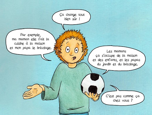 A tel point d’ailleurs que Nao est traité de fille, injure suprême qui en dit long sur les représentations que peuvent générer les enfants sur le genre féminin. Sous prétexte d’une barrette rose au niveau de ses chaussures, il est regardé comme la marque de l’infamie féminine !