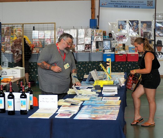 Sur le stand BDM 33 vous trouverez : des marque pages, des Ex-libris, les affiches et la cuvée des Estivales du château La Hourcade, mais aussi des cartes postales et des timbres de la quinzième édition, avec le Journal du Médoc en tant que nouveau partenaire.