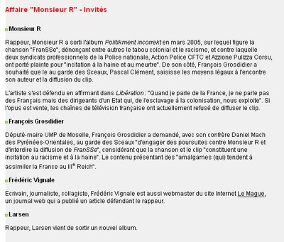 Notre fondateur bien aimé Frédéric Vignale sera un des invités de Paul Amar ce soir à 20H50 du FRANCE 5 dans son émission "ETATS GENERAUX" où il prendra la défense de Monsieur R et du peuple noir... dans un débat intitulé "Y’a t’il un racisme anti-blancs ?"