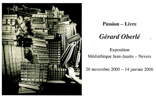 Notre ami et complice Gérard Oberlé, grand écrivain, bibliophile reconnu au destin atypique est à l’honneur à la médiathèque Jean Jaurès de Nevers, du 26 Novembre 2005 au 14 Janvier 2006 à travers la mise en place d’une série de documents originaux et intimes appartenants à cet homme qui a tant fait et fait encore pour l’Art & la Culture.