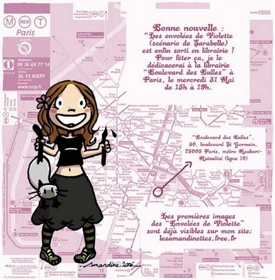 Une fête se prépare ... et c’est à l’occasion de la sortie officielle en librairie de l’album " Les Envolées de Violette" dessiné par l’unique et délicieuse Amandine (que j’ai croisé il n’y pas si longtemps à travers le fanzine NEKOMIX) et scénarisé par une talentueuse plume de Sarabelle.