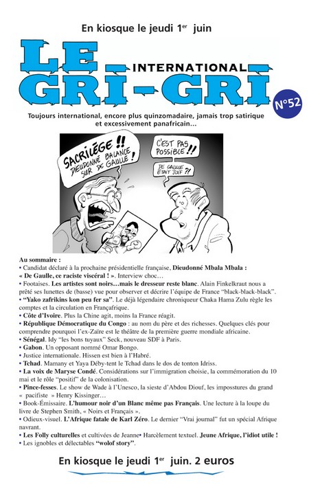 Sortie le 1 er Juin du N-52 du "Gri-Gri International, quinzomadaire " satirique panafricain