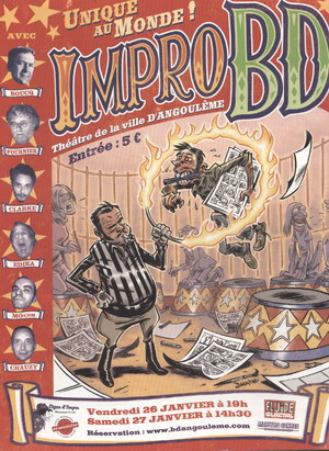 La Ligue d’Impro et Fluide Glacial mené par le talentueux Monsieur Loyal Thierry Tinlot vont s’improviser dans la BD ! Quand la parole rejoint le dessin ! Avec : Boucq , Fournier, Clarke, Edika, Mo/cdm et Chauzy.