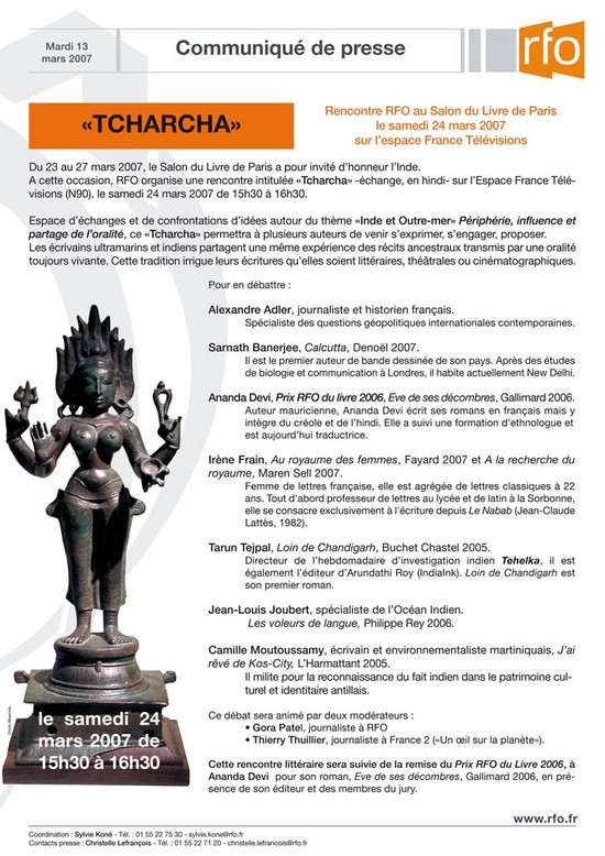 "Tcharcha" le samedi 24 mars au Salon du livre 2007