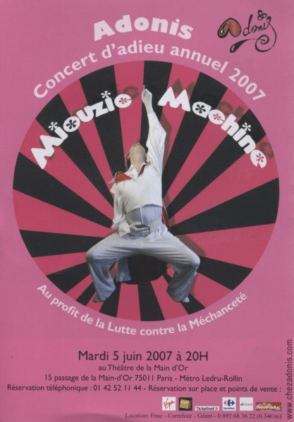 Parisiens, Adonis chante dans votre bourg le 5 Juin 2007 prochain au théâtre de la main d’or.