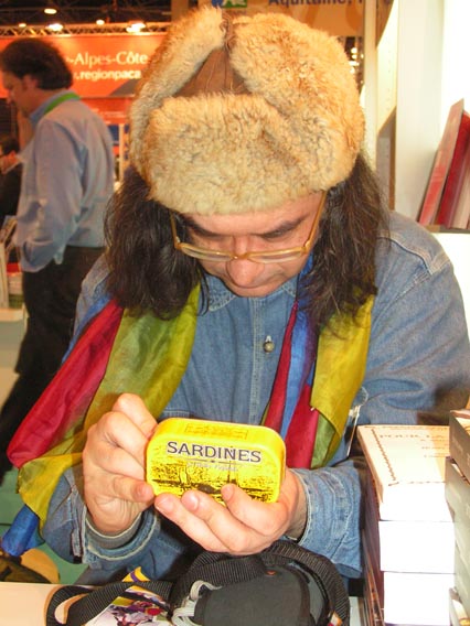 La boîte de sardines dédicacée... c’est pour Christine Bravo qui ne sait pas lire, je suppose ! Merci Edouardo pour ce joli moment passé avec Madame Danièle Mitterrand, au Salon du Livre.
