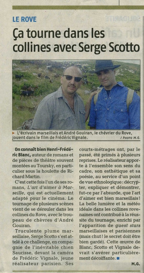 Article sur le tournage de "L’Art d’aimer à Marseille" dans le journal LA PROVENCE